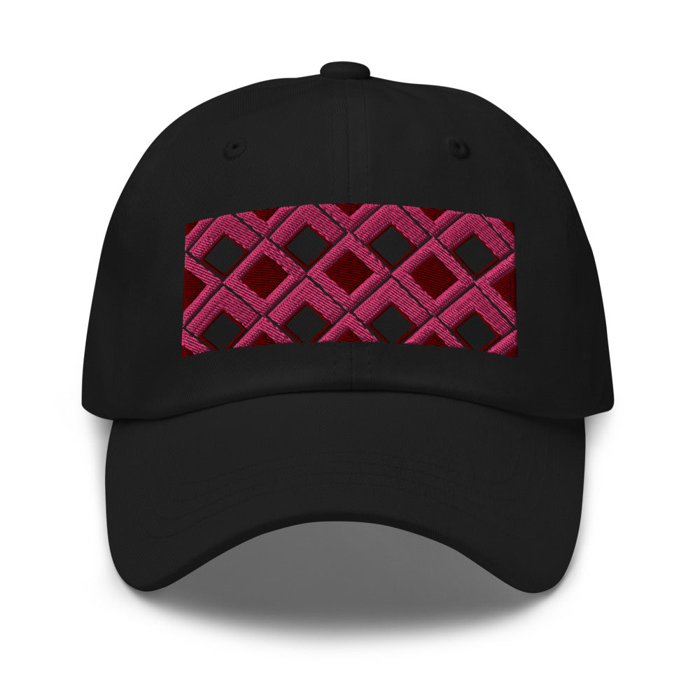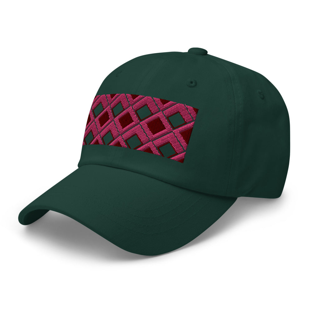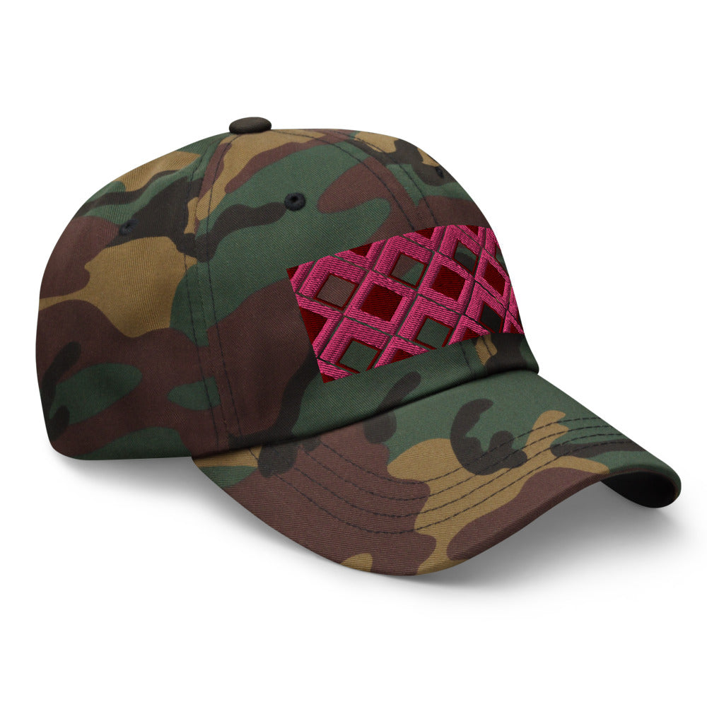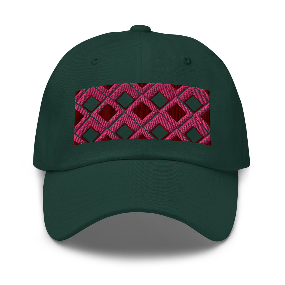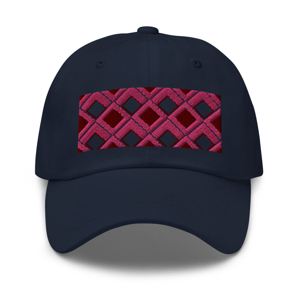 Tragen Sie den Retro-Look mit dieser fantastischen rosafarbenen Dad-Mütze im Vintage-Stil der 60er und Mid-Century Modern aus unserer Geometric Glam Collection mit farbenfrohem Rautenmuster. Dieses farbenfrohe, luxuriös anmutende Logo im Retro-Stil der 60er hat ein mehrfarbiges geometrisches Rautenmuster, das von Grafikdesignern der 1950er und 1960er Jahre wie Paul Rand, Saul Bass und Alexander Girard inspiriert wurde. Verströmt diese so wichtige Vintage-Lebendigkeit, wo immer Sie auch hingehen. Diese Unisex-Dad-Mütze ist definitiv abgefahrener Street-Chic, den Sie tragen möchten.