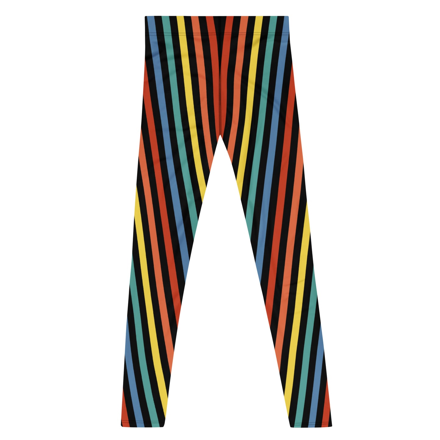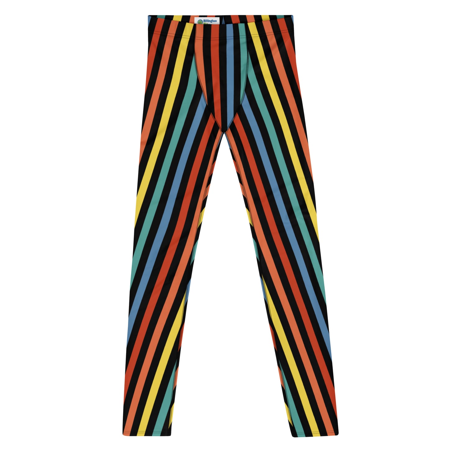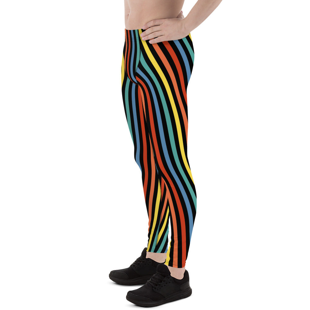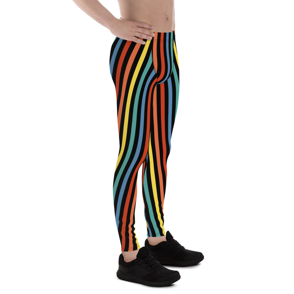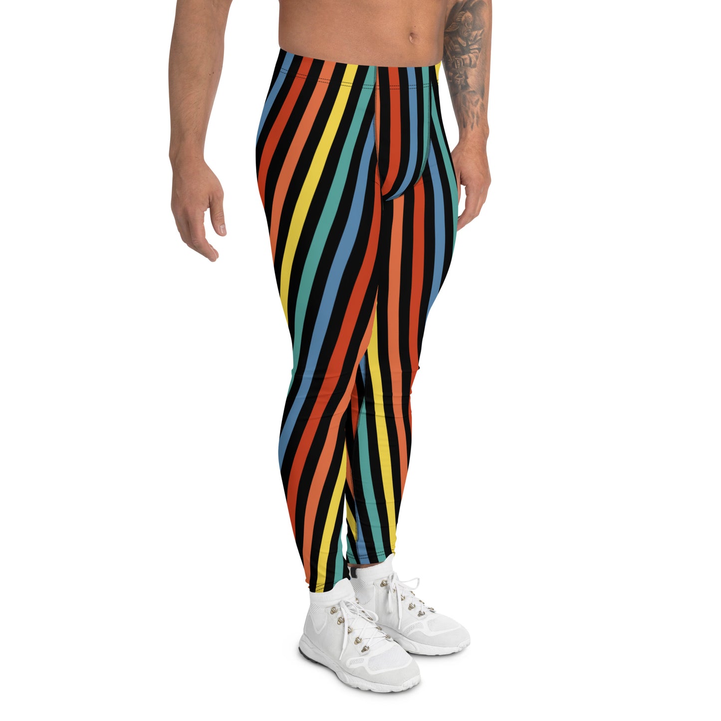 Enhance your athleisurewear wardrobe this season with these awesome festival leggings for men. With a striped vertical pattern in rainbow and black, these meggings make the perfect fashion statement. In a pro-wrestling style, these gym leggings will provide the comfort you require whatever your sport. As men's running tights, the compression fabric will provide the support you require in all the right places. Versatile for fashion, sports and streetwear, these leggings will be sure to become your new best friend.