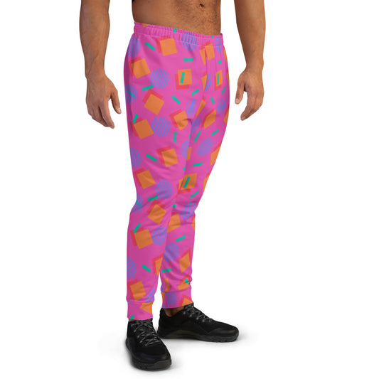 Patterned Men's Joggers | 80s Memphis Pink Cubic Circular