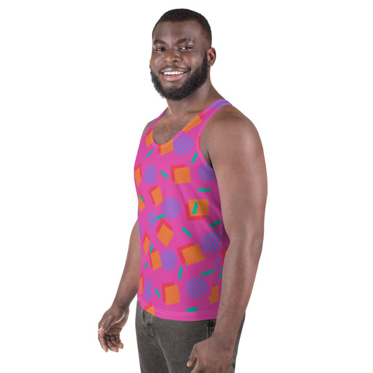 Camiseta sin mangas para hombre, Memphis, años 80, circular, rosa