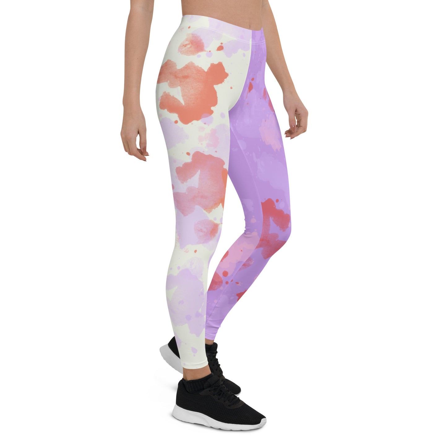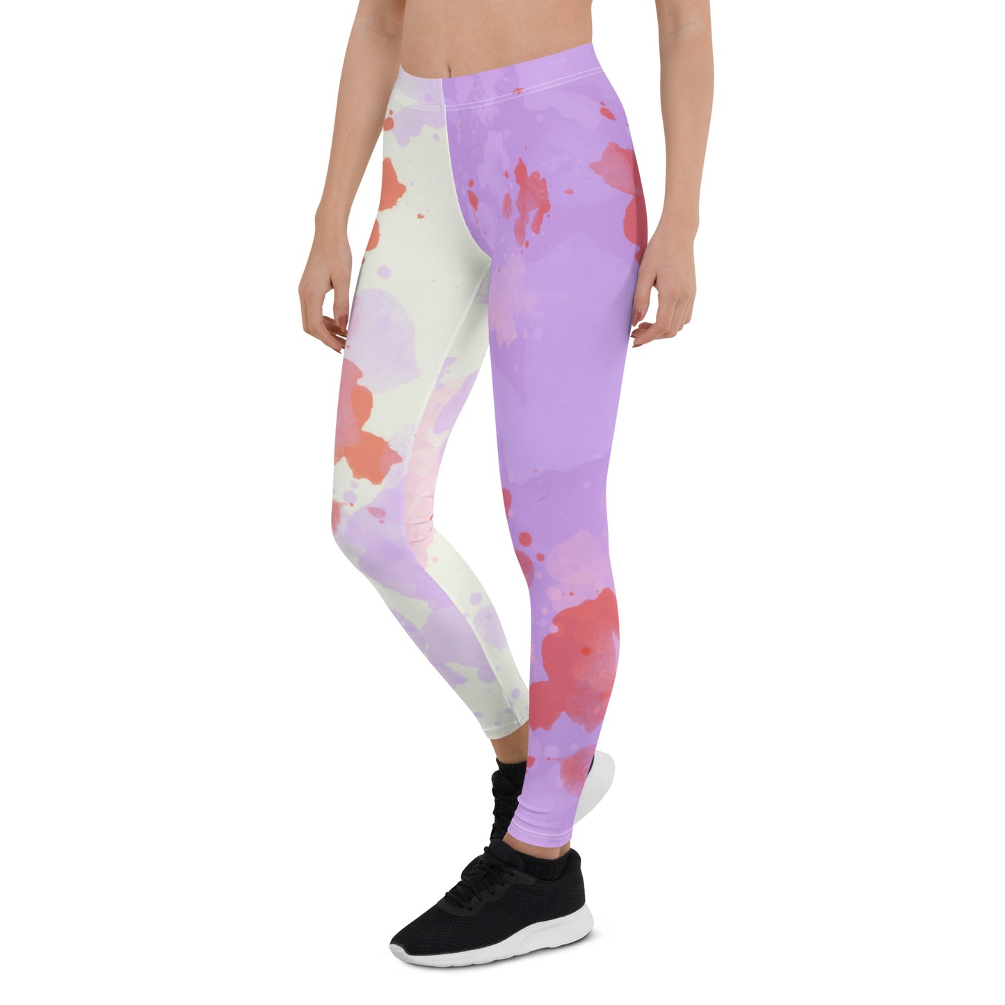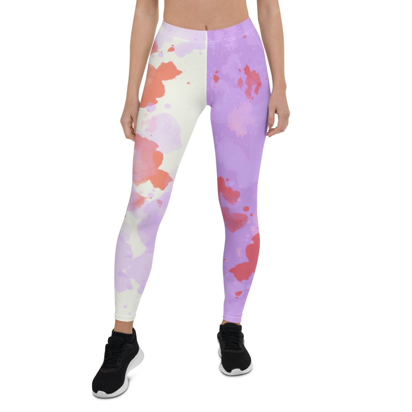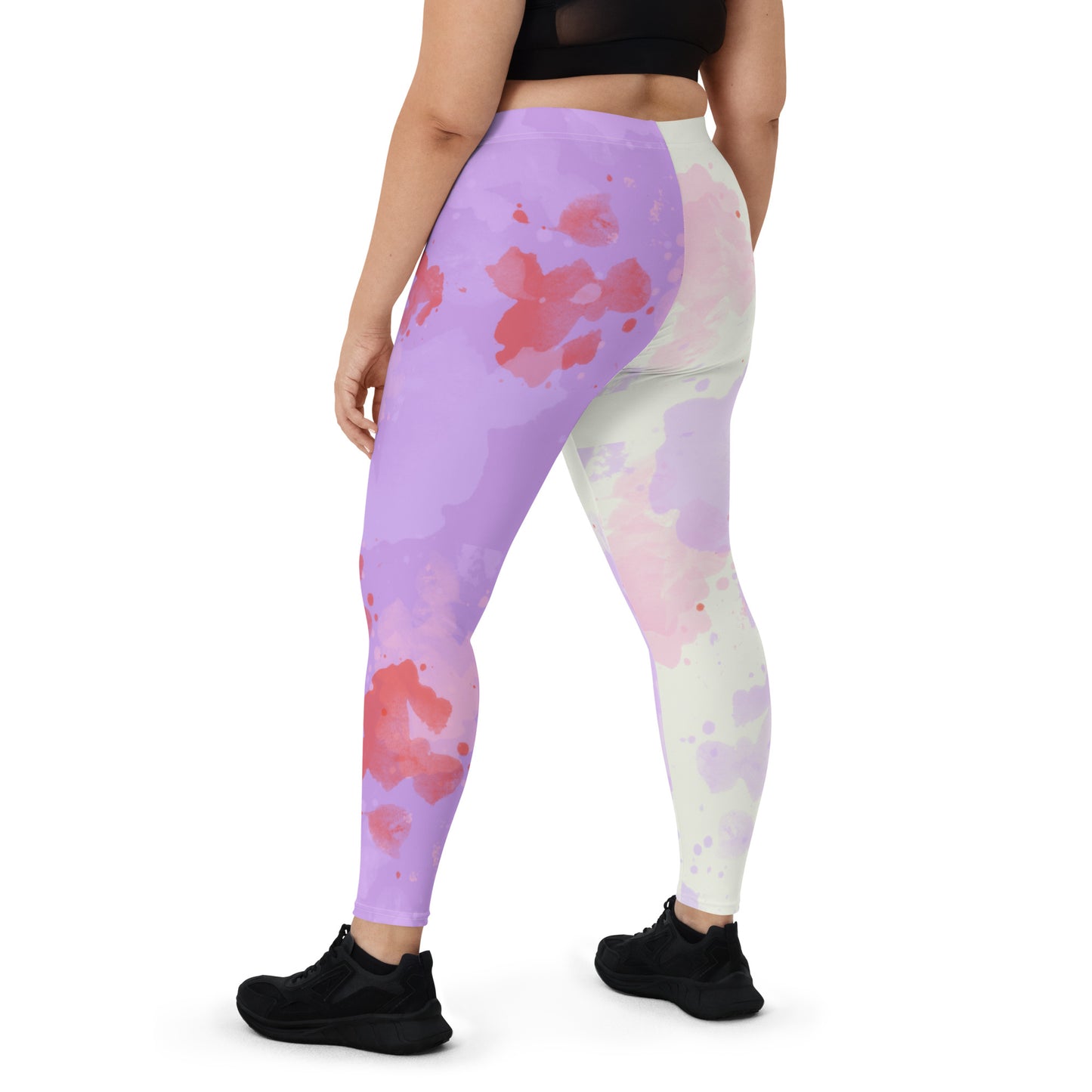 Creepy cute leggings for women in a gurokawa, blood-smeared and bodily fluid enhanced style design with purple and cream or black color blocks. Pastel Goth and Yami Kawaii inspired meggs for women for a spooky, gothic and alternative fashion look. Soft pastel medical menhera vibes. Great for cosplay and festival events.