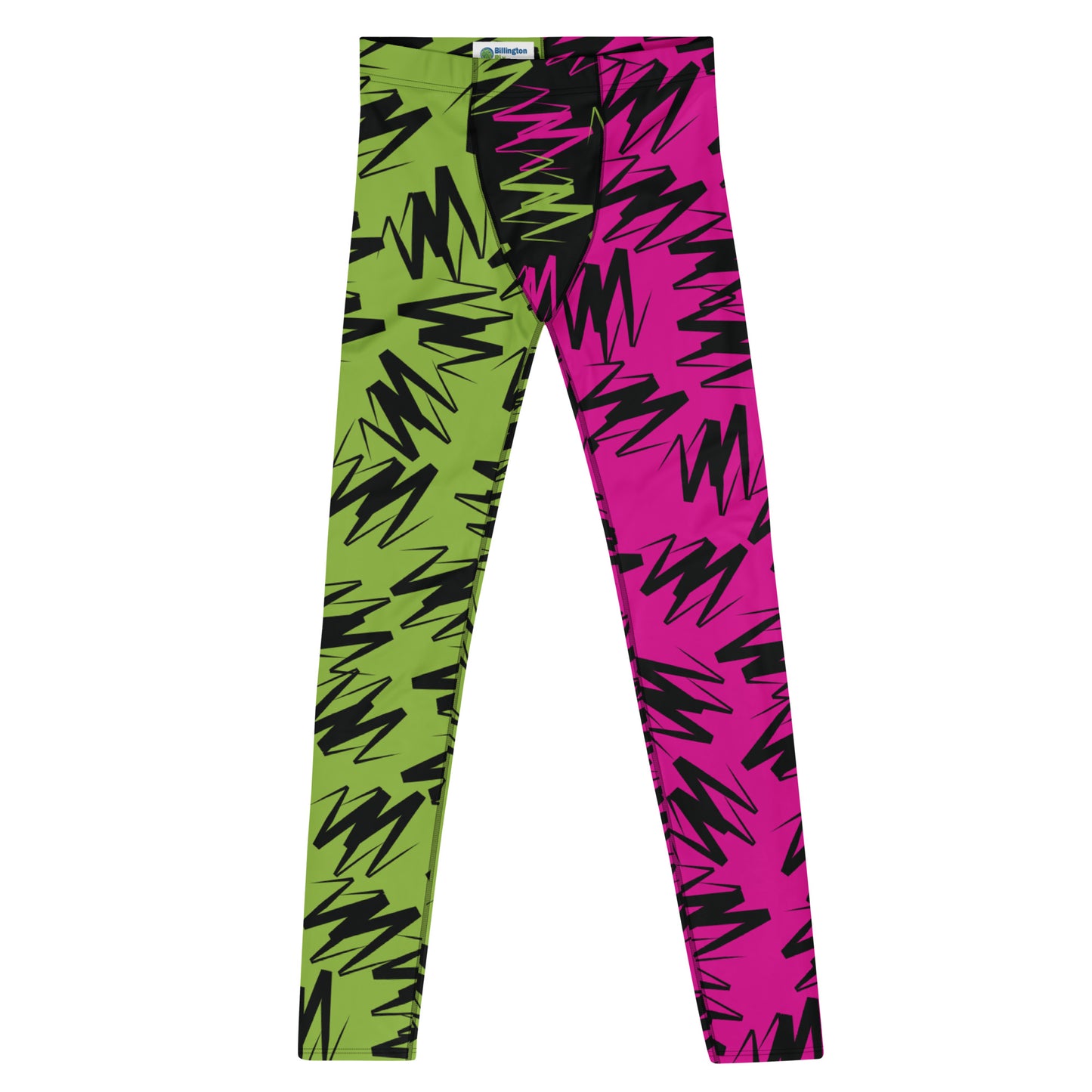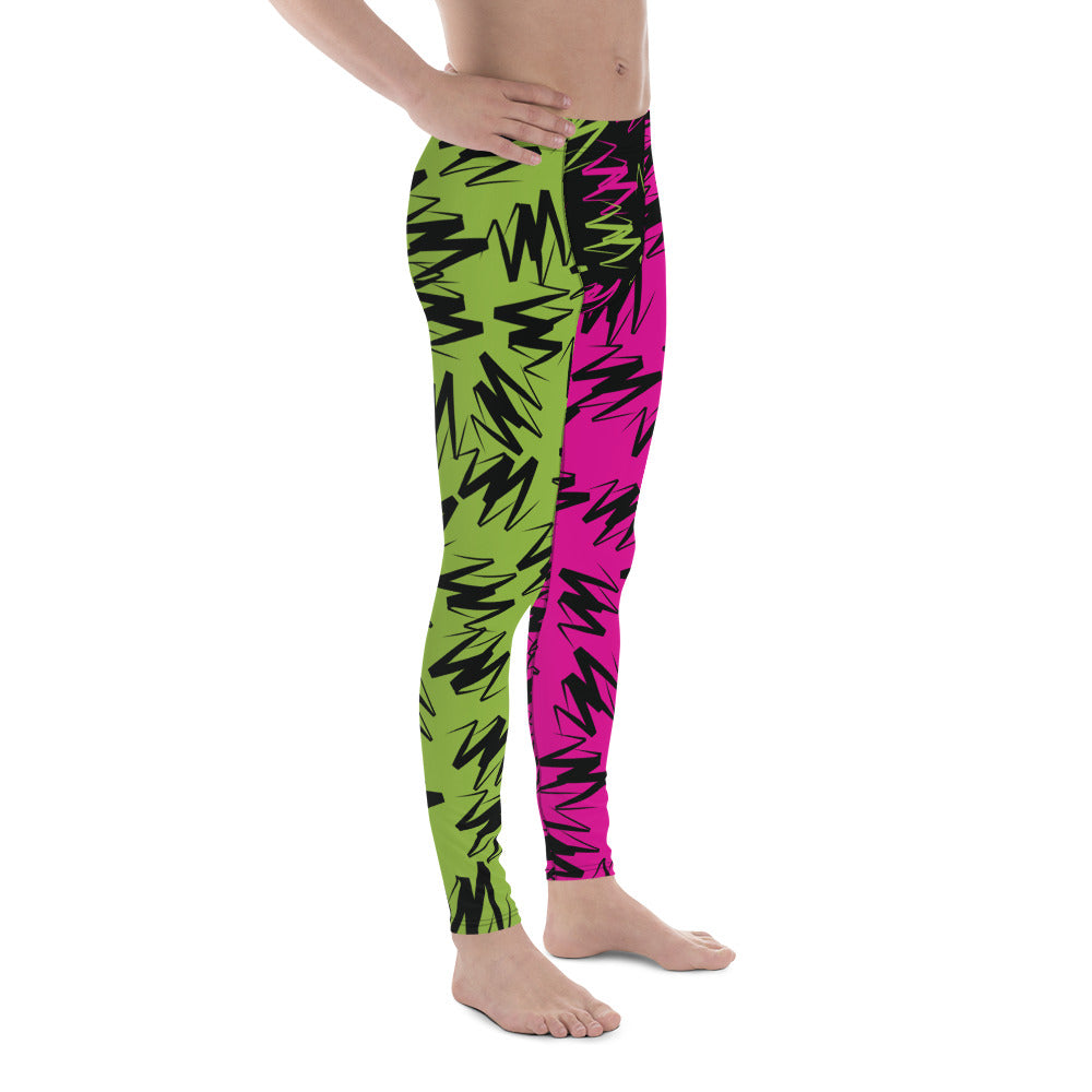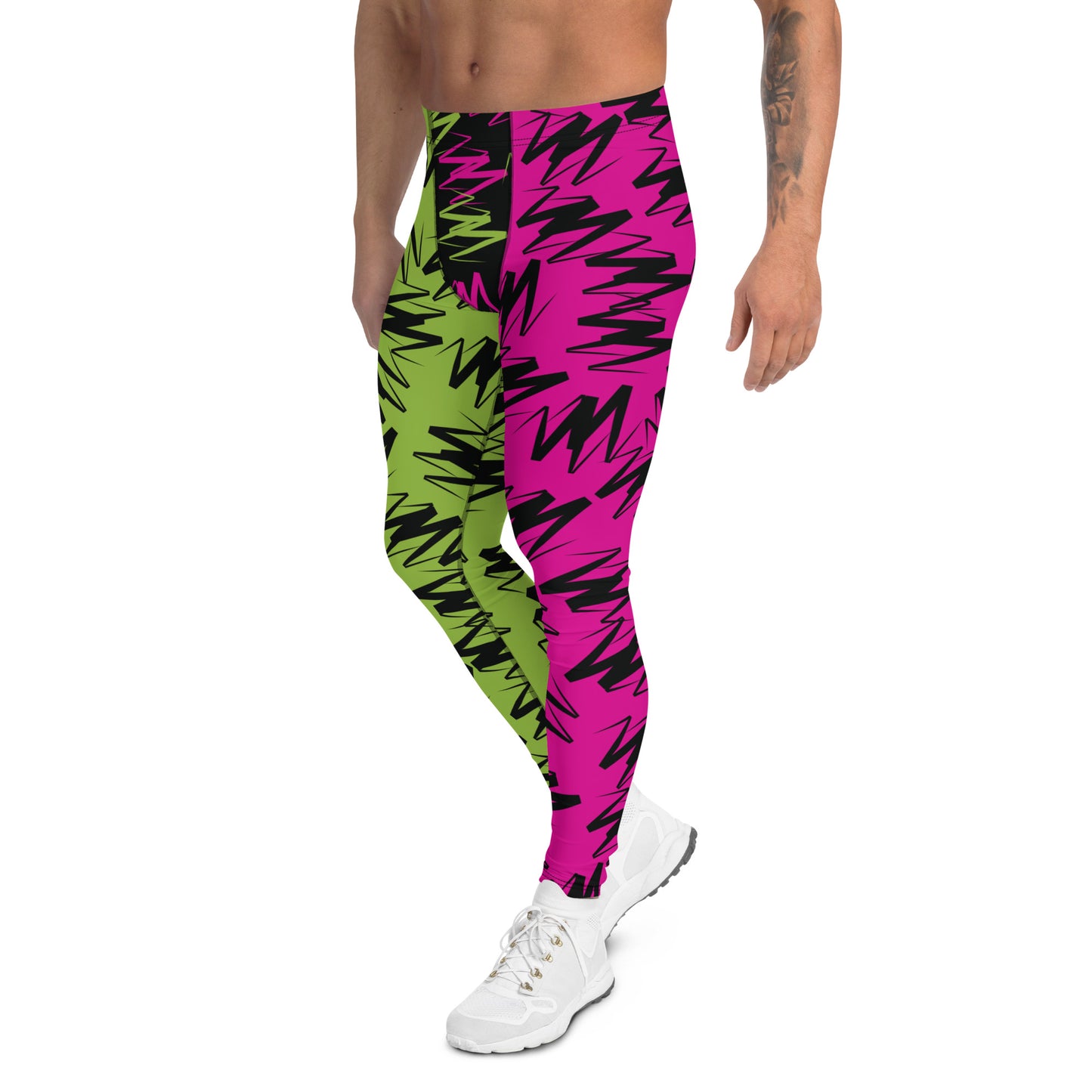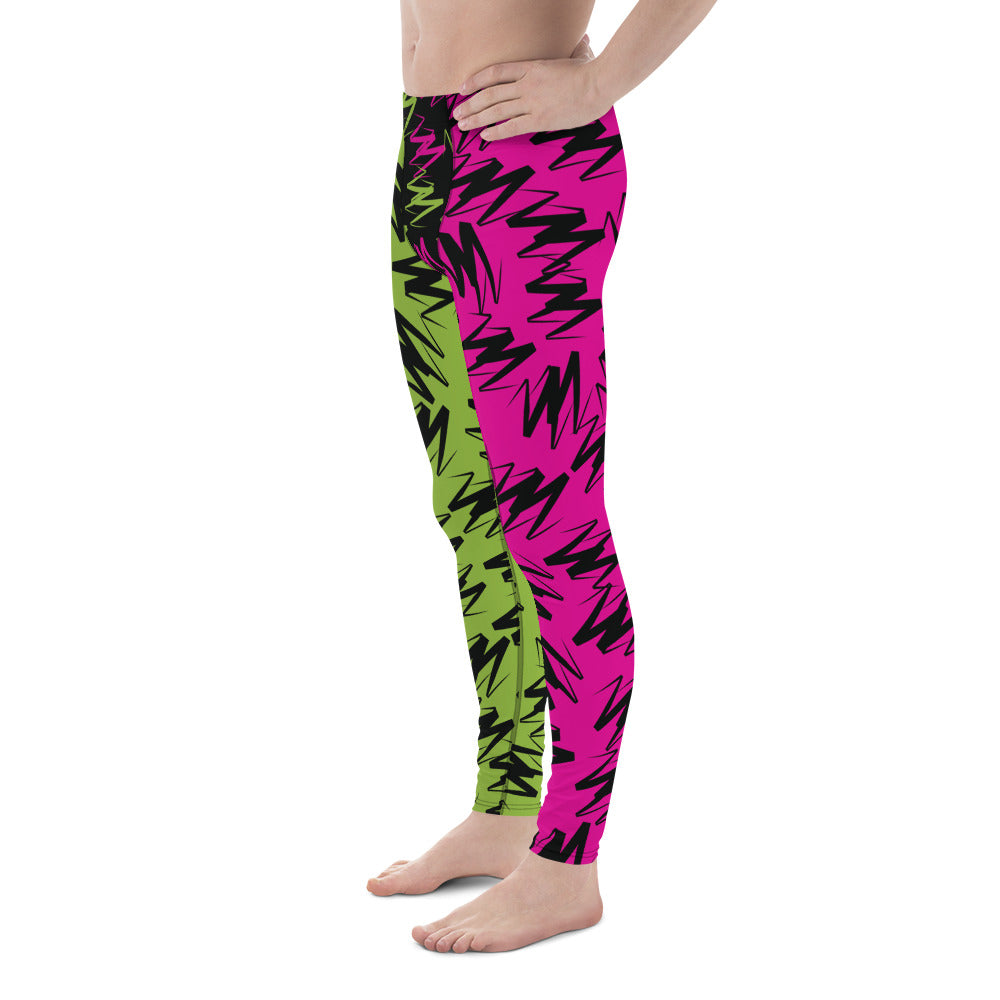 Bring the flash and flair of 80s wrestling style into your everyday look with these Men’s Zigzag Color Block Leggings. Bold lightning-style zigzags run down each leg for a high-impact look that’s perfect for the gym, cosplay events, festivals, or nights out. Made from smooth, four-way stretch fabric for all-day comfort and support.