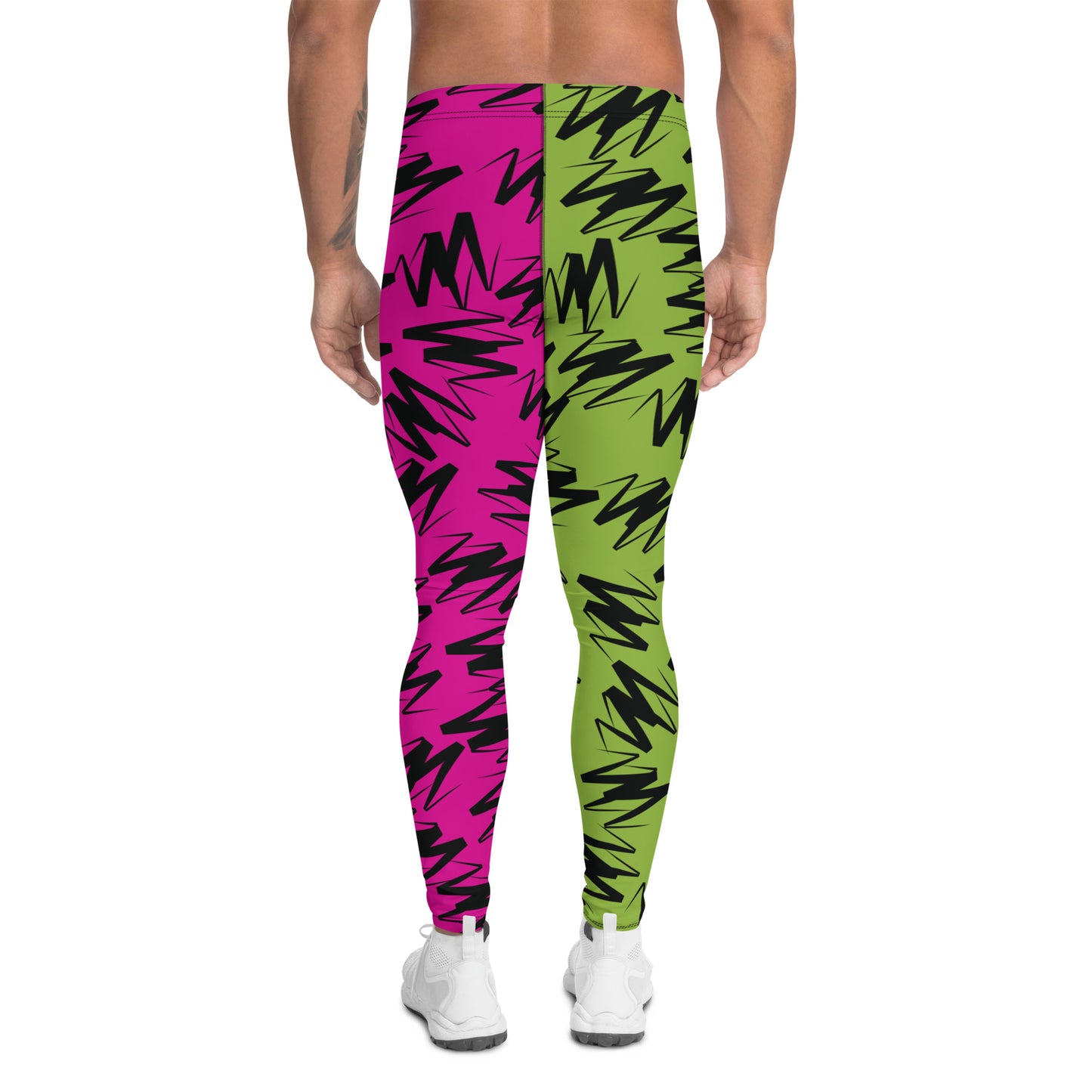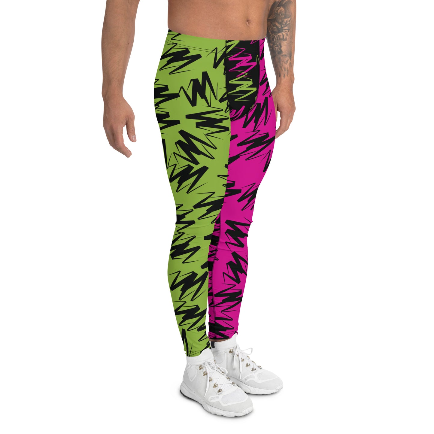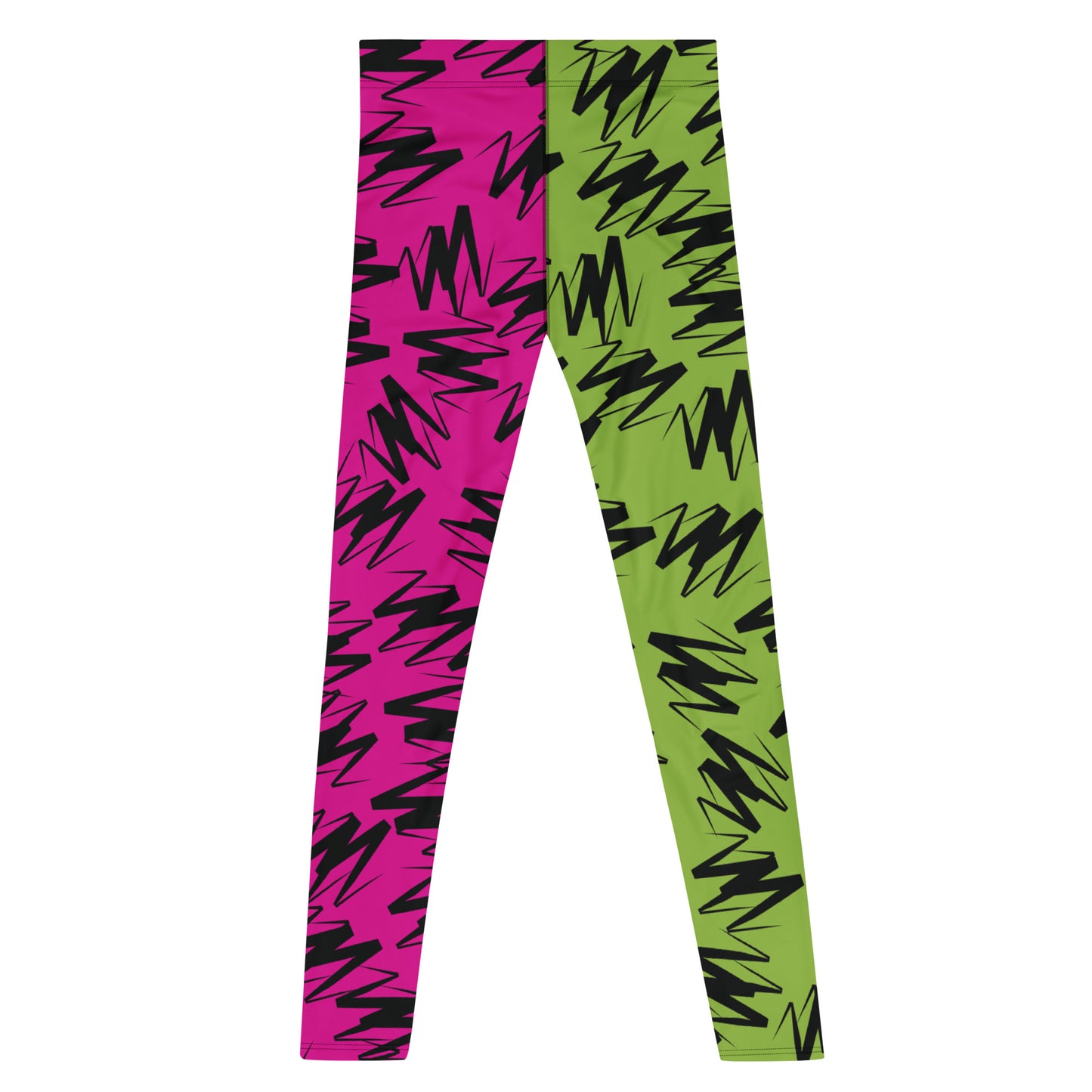 Bring the flash and flair of 80s wrestling style into your everyday look with these Men’s Zigzag Color Block Leggings. Bold lightning-style zigzags run down each leg for a high-impact look that’s perfect for the gym, cosplay events, festivals, or nights out. Made from smooth, four-way stretch fabric for all-day comfort and support.